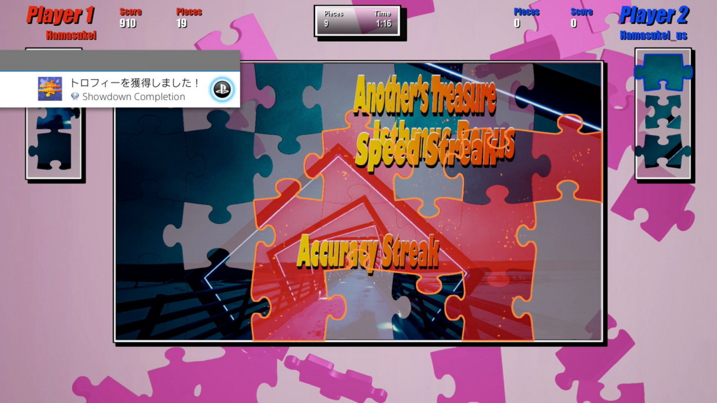 『Puzzle Showdown 4K (北米版)』のプラチナトロフィーを獲得しました。順調にいけば3~4時間で獲得できるかと思います。